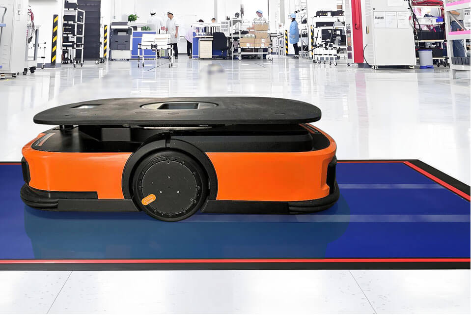 除了粘尘垫,还可以通过优化AGV车轮的设计来减少灰尘和印迹的产生。例如,选择带有自清洁功能的车轮,这类车轮在运行过程中能自动清除附着在表面的灰尘。另一种方法是使用防静电车轮,这种车轮能减少静电吸附灰尘的效果,从而降低灰尘在车轮上的积累。此外,定期检查车轮的磨损情况并及时更换磨损严重的车轮,也能有效减少车轮印的产生。